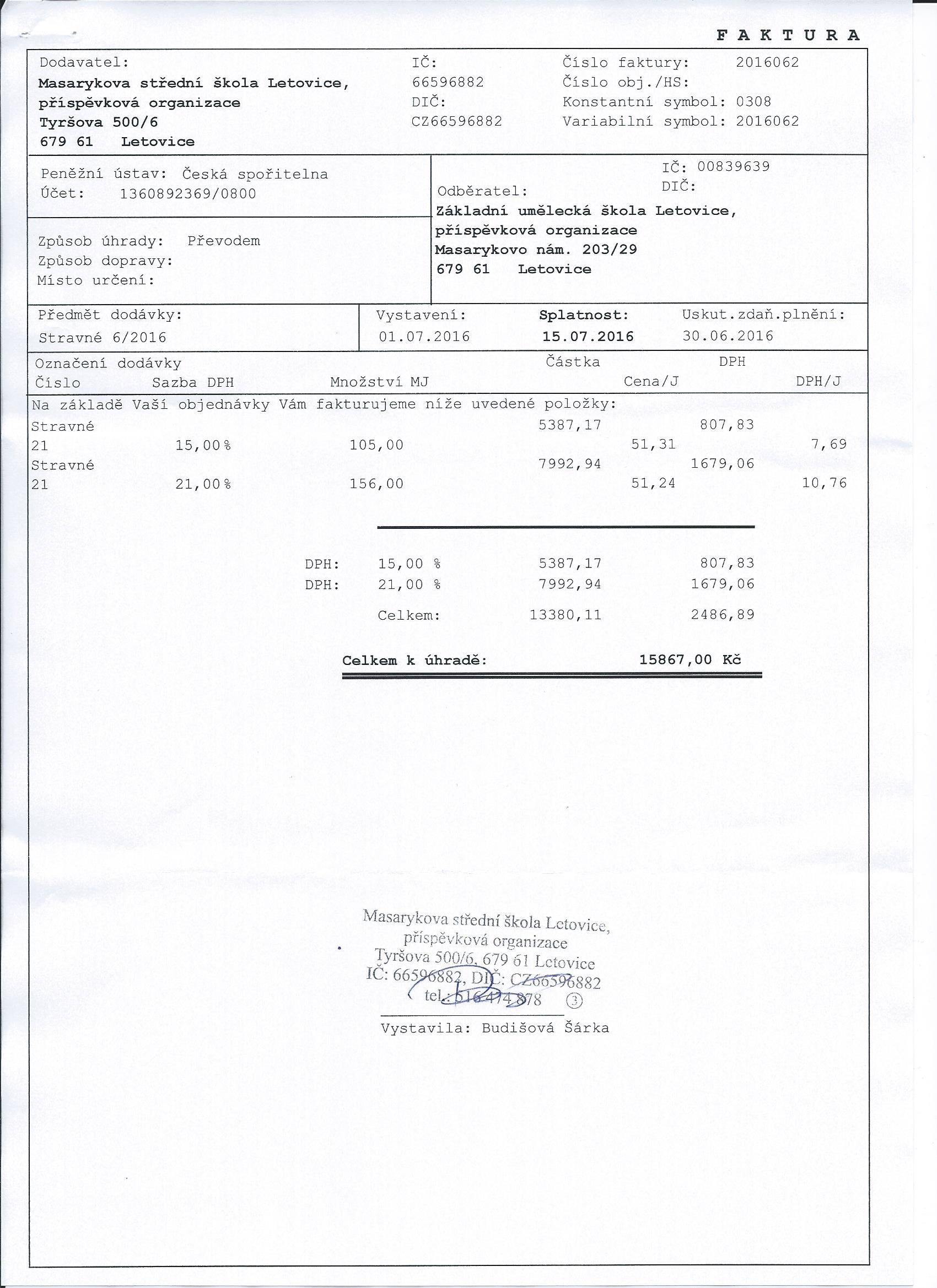 - Úřední název: Základní umělecká škola Letovice, příspěvková organizace