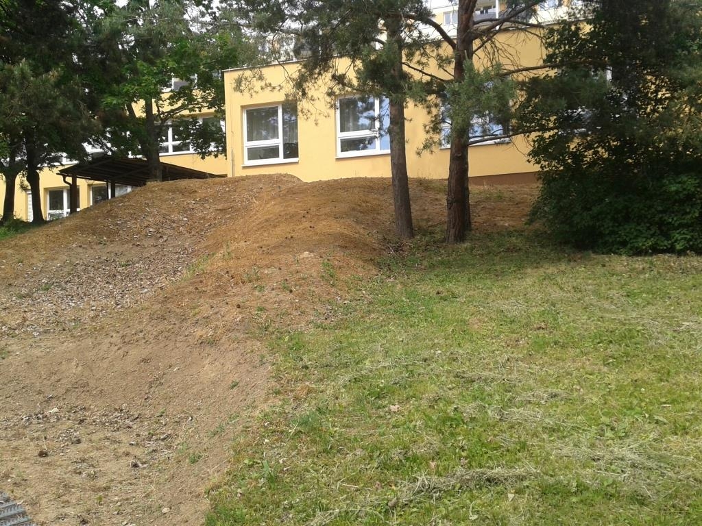 Drobné upřesnění projektu herního prvku I-sestava svahových skluzavek s ptačí věží (vyznačeno v příloze) a fotodokumentace připraveného terénu.
