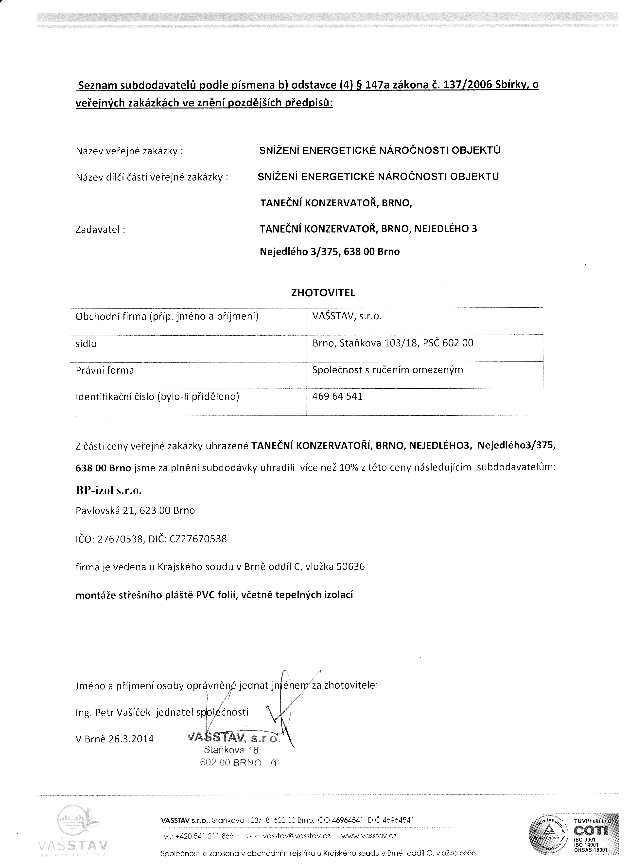 | Název: | Seznam subdodavatelů 2013 |