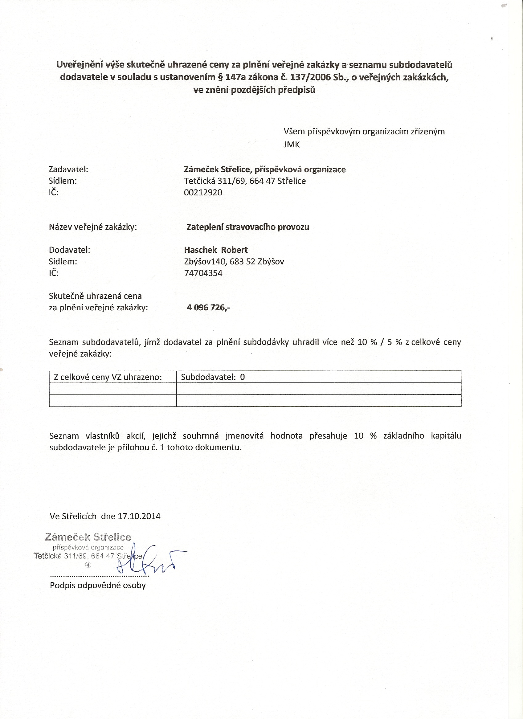 skutečně uhrazená cena díla | ostatní dokumentace - veřejná |