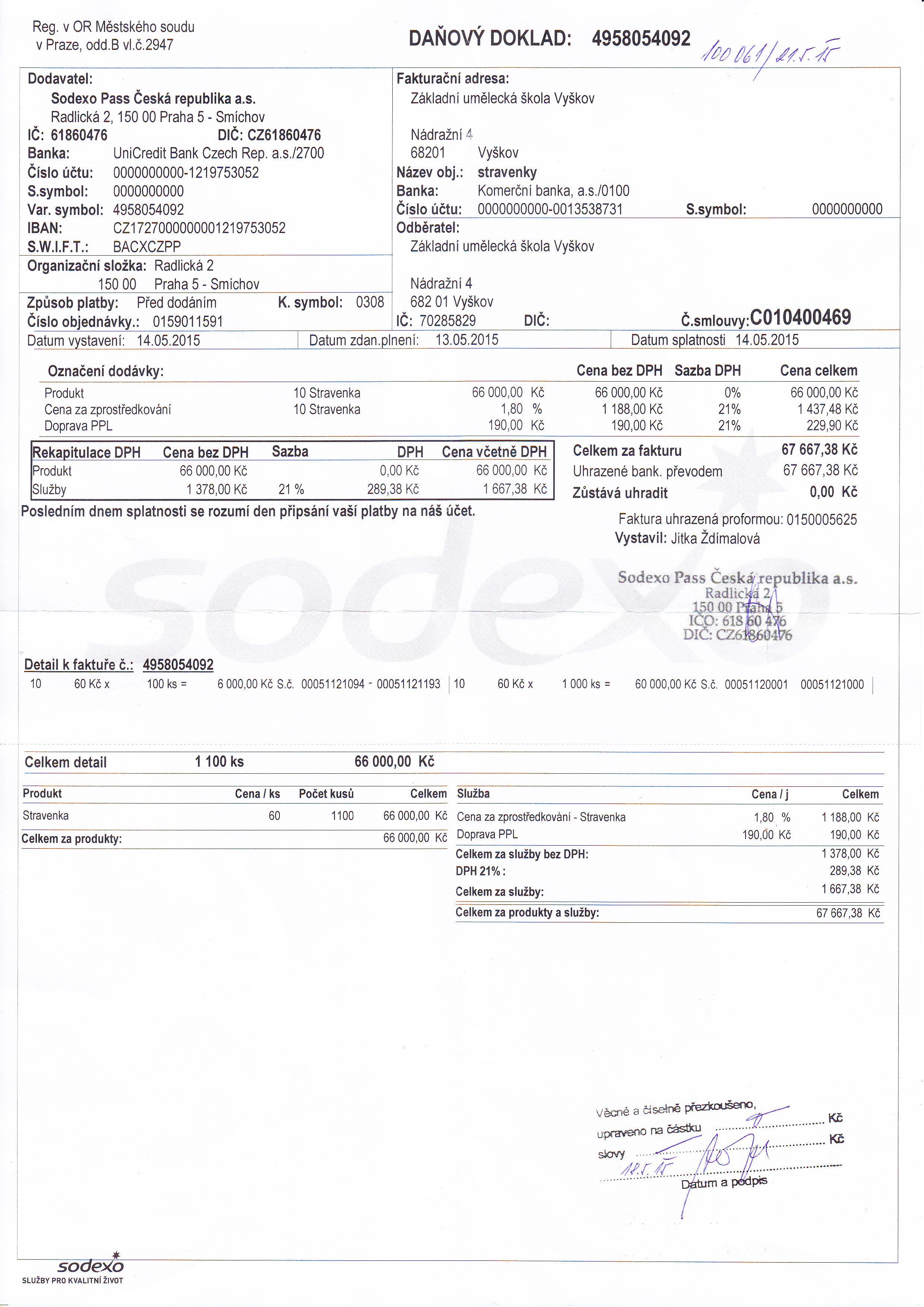 | Název: | daňový doklad na dodání stravek |