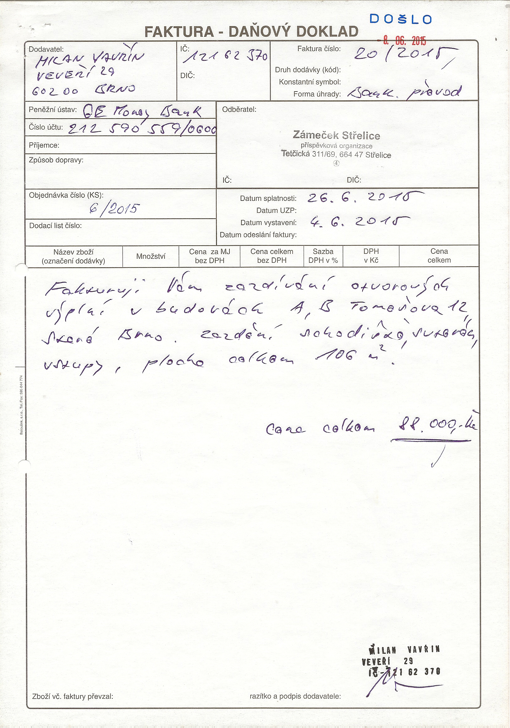 Faktura č. 1 Tomešova | ostatní dokumentace - veřejná |