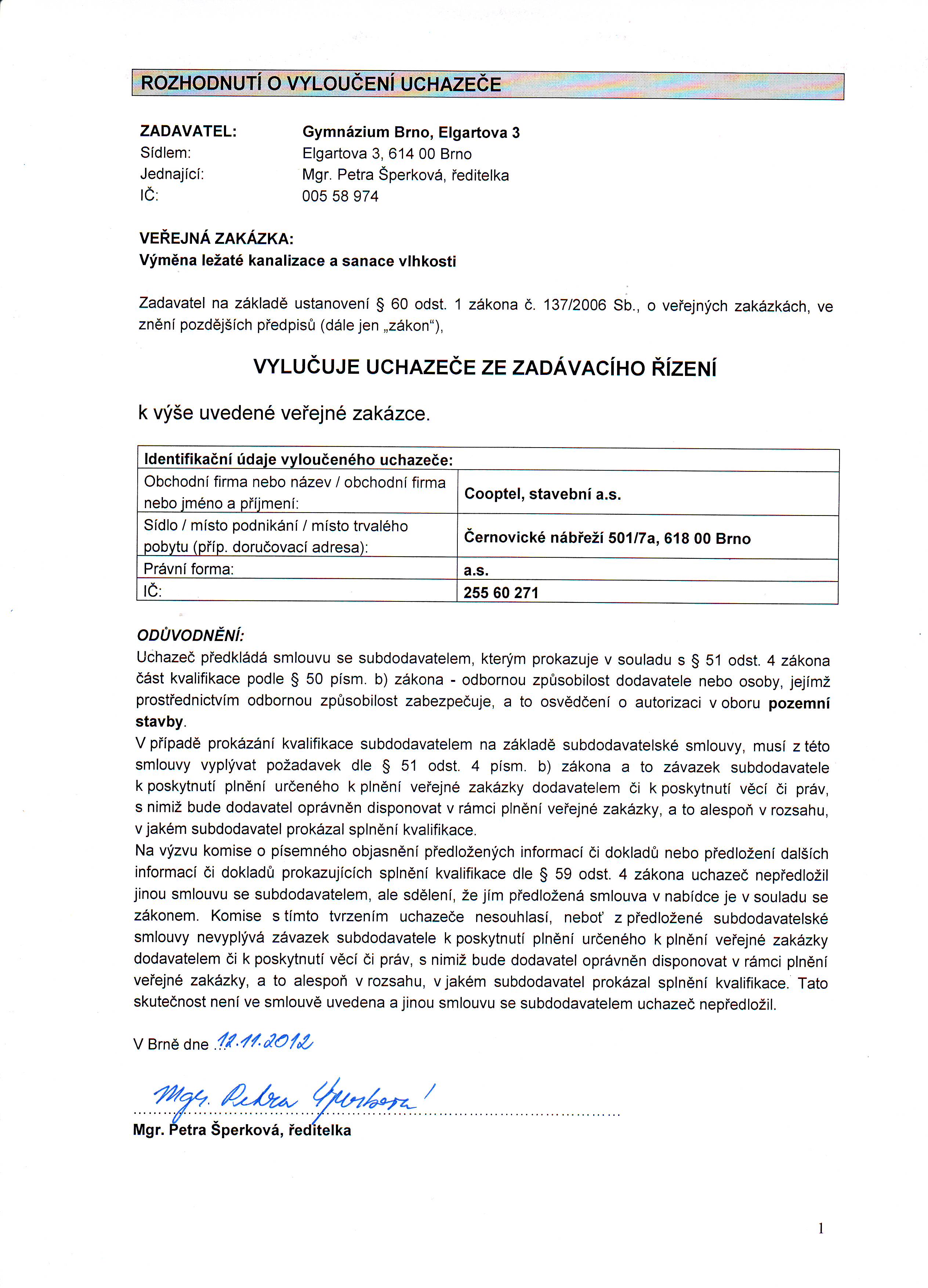 Rozhodnutí o vyloučení | ostatní dokumentace - veřejná |