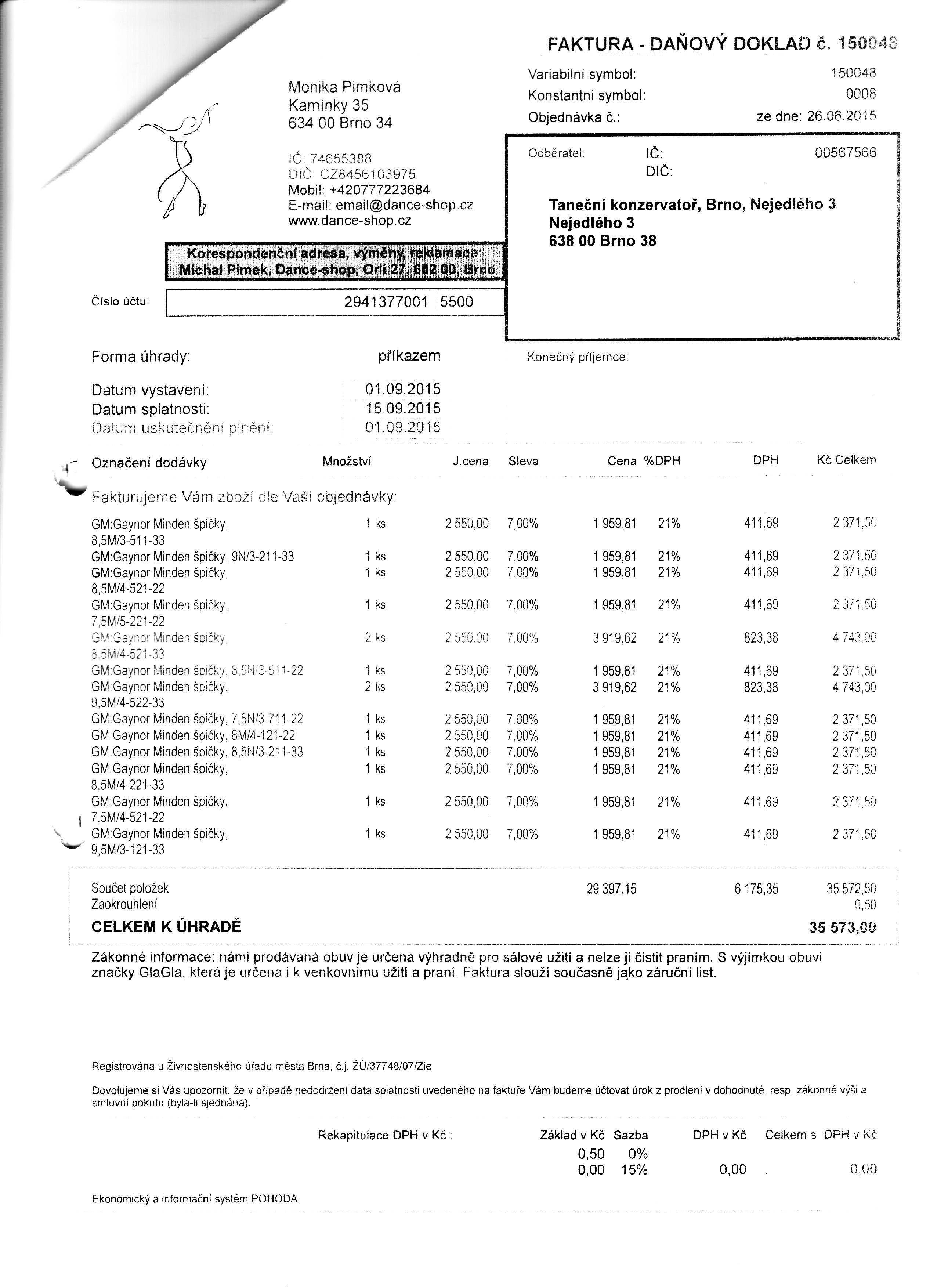 Objednávka baletních bot | Baletní boty | ostatní dokumentace - veřejná |