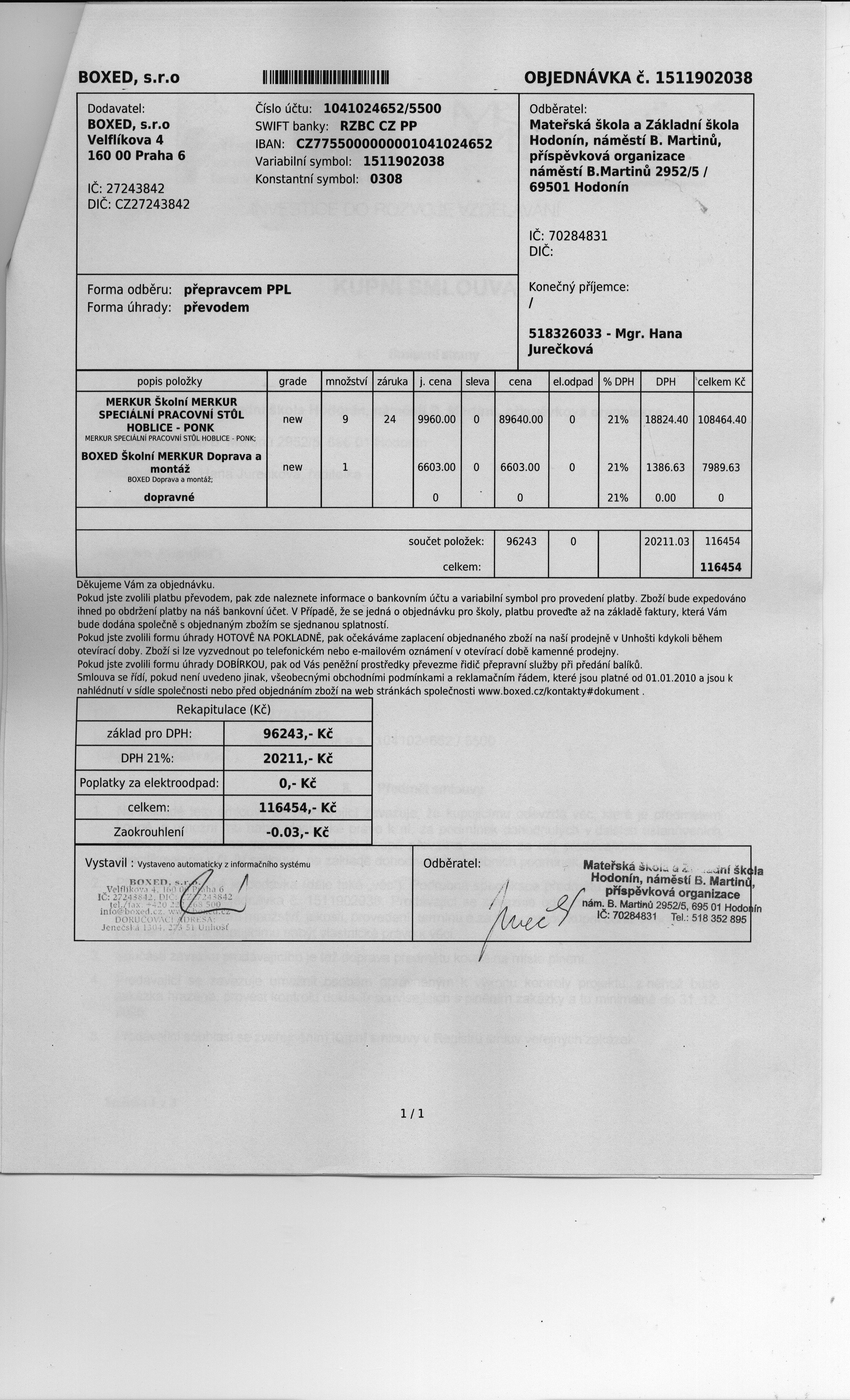 | Název: | Kupní smlouva na dodávku speciálních pracovních stolů |
