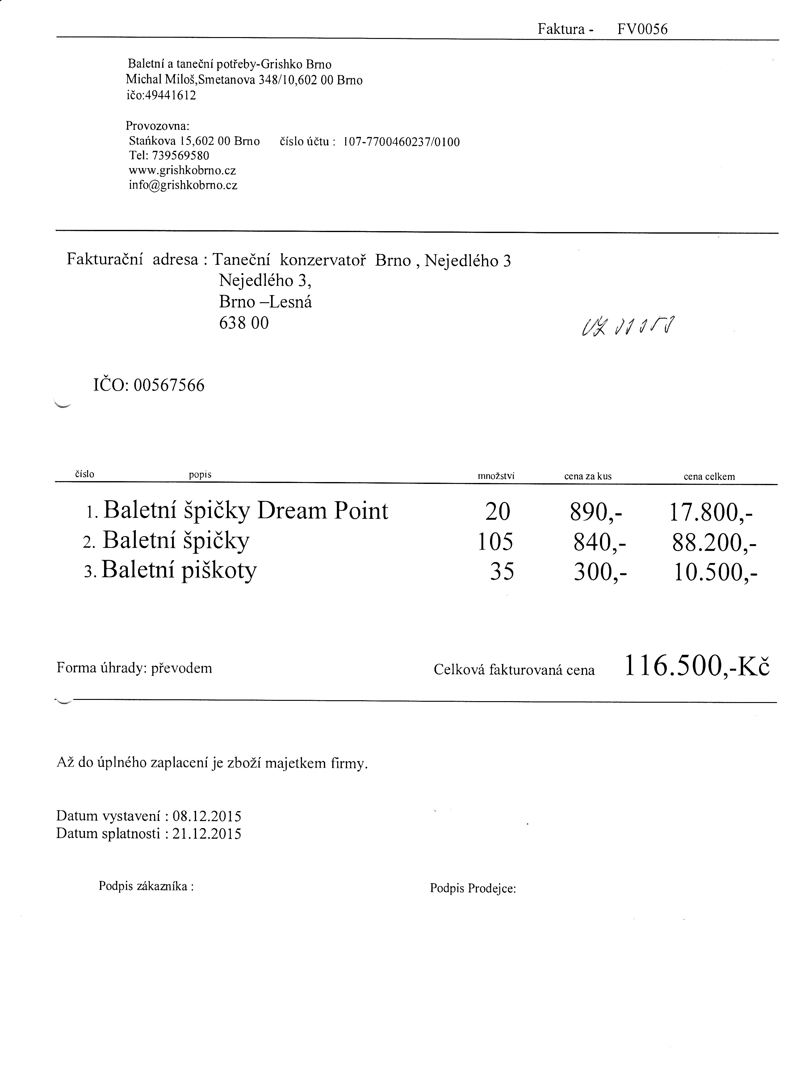 Objednávka baletních bot | baletní špičky a piškoty | ostatní dokumentace - veřejná |