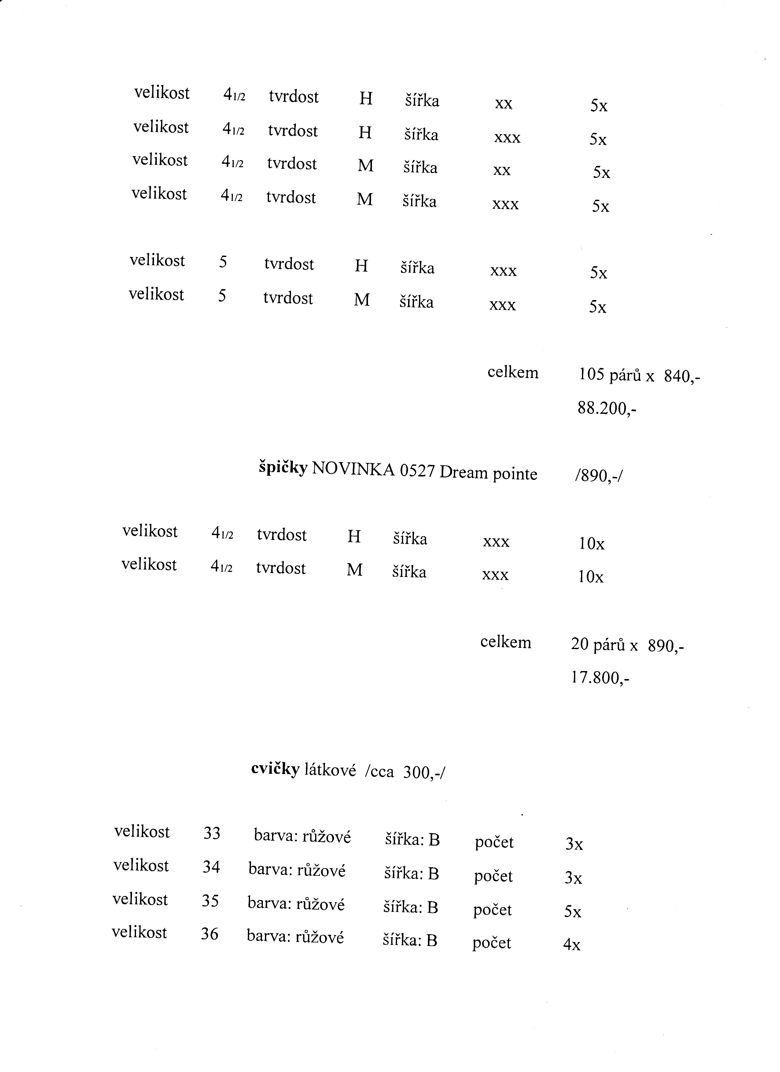 Objednávka baletních bot | Baletní špičky a piškoty | ostatní dokumentace - veřejná |