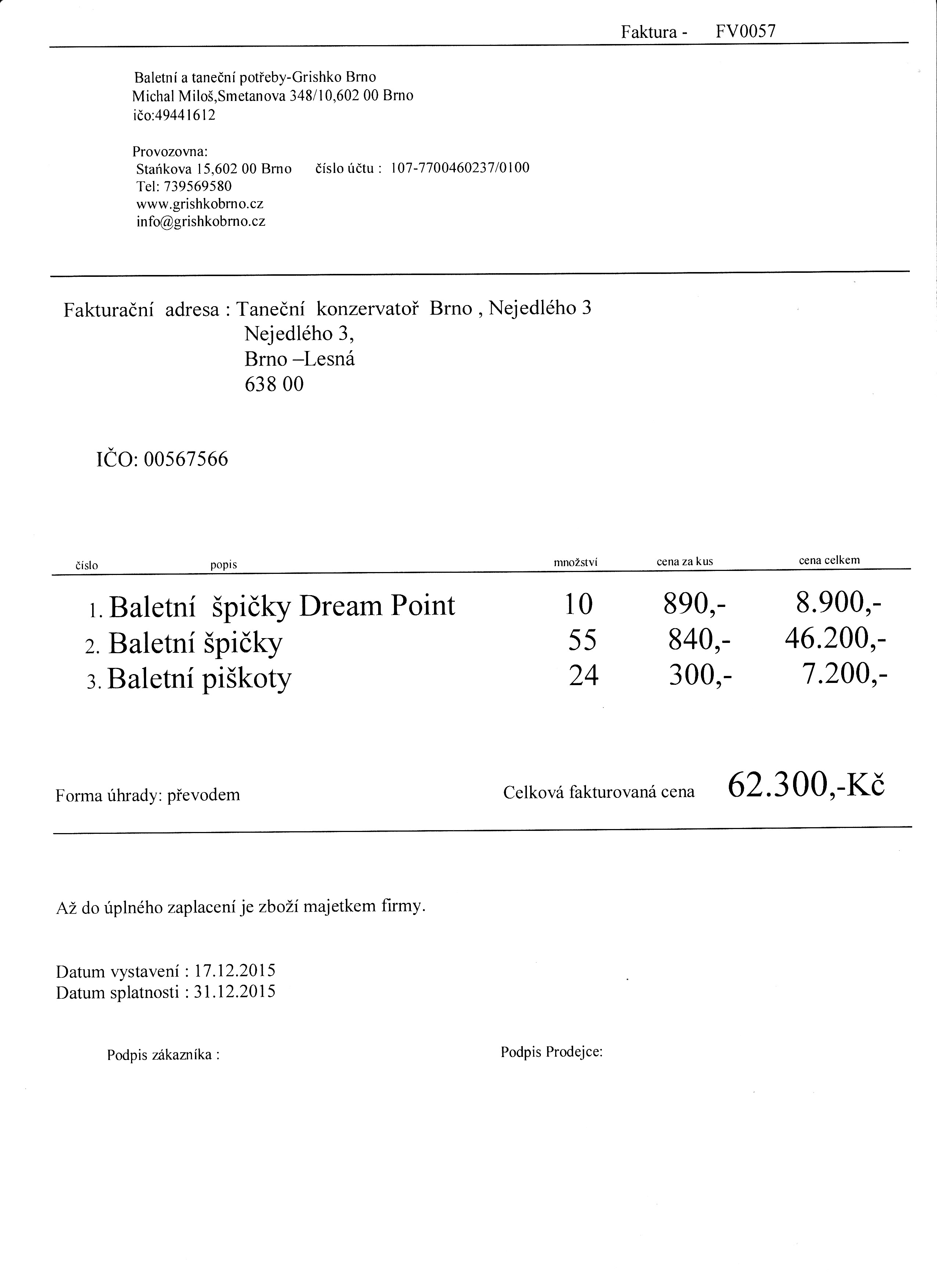 Objednávka baletních bot | Baletní špičky, baletní piškoty | ostatní dokumentace - veřejná |
