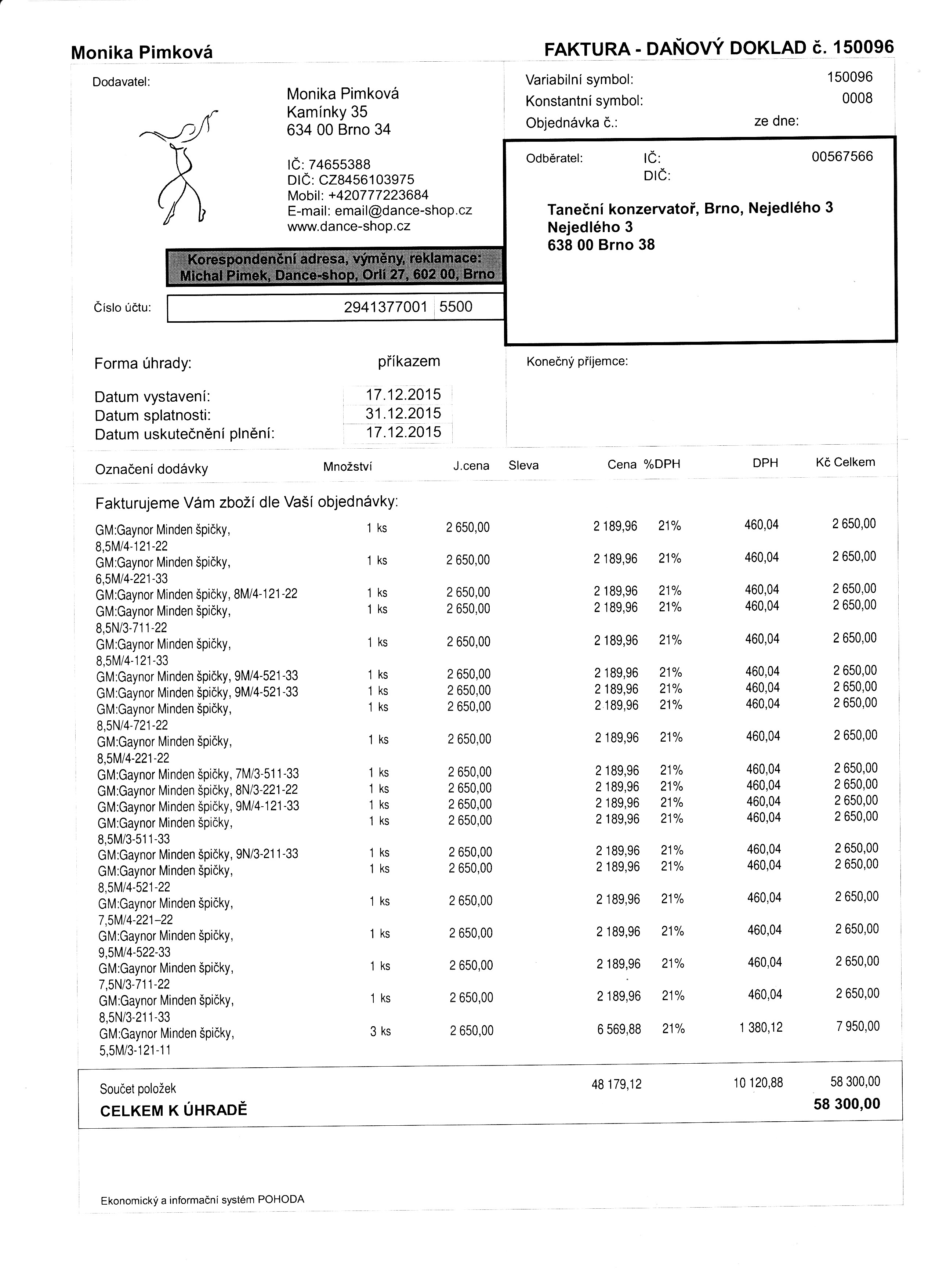 Objednávka baletních bot | 22 ks špičky Minden | ostatní dokumentace - veřejná |