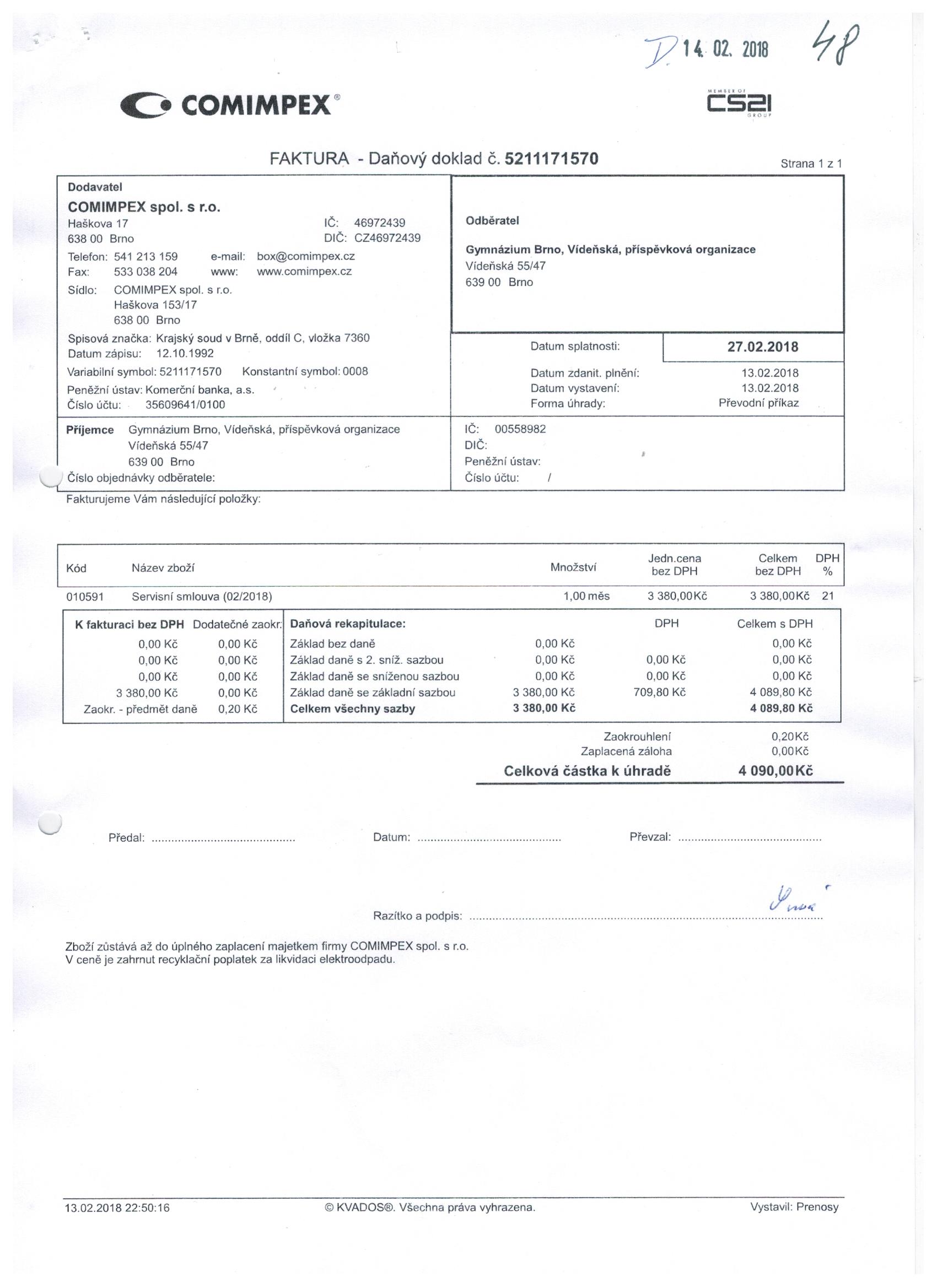 | Název: | Faktura únor 2018 |