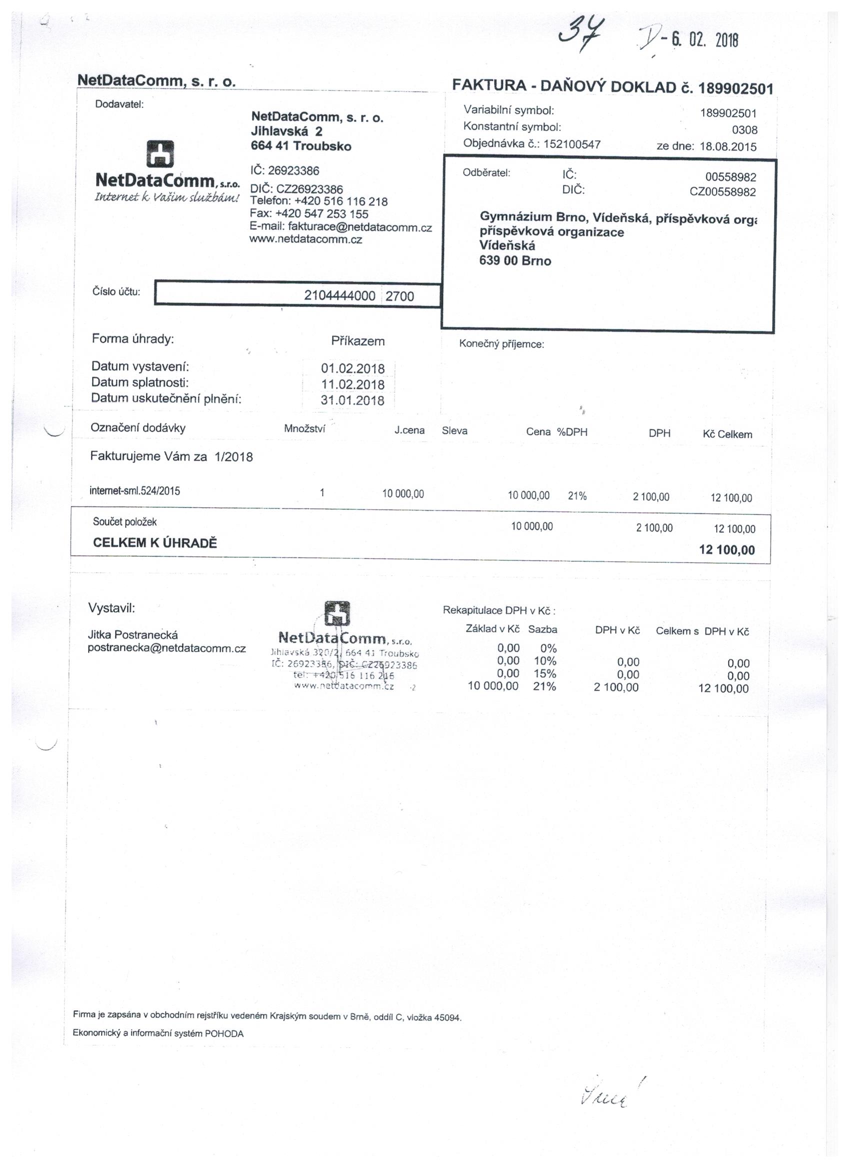 | Název: | Faktura únor 2018 |