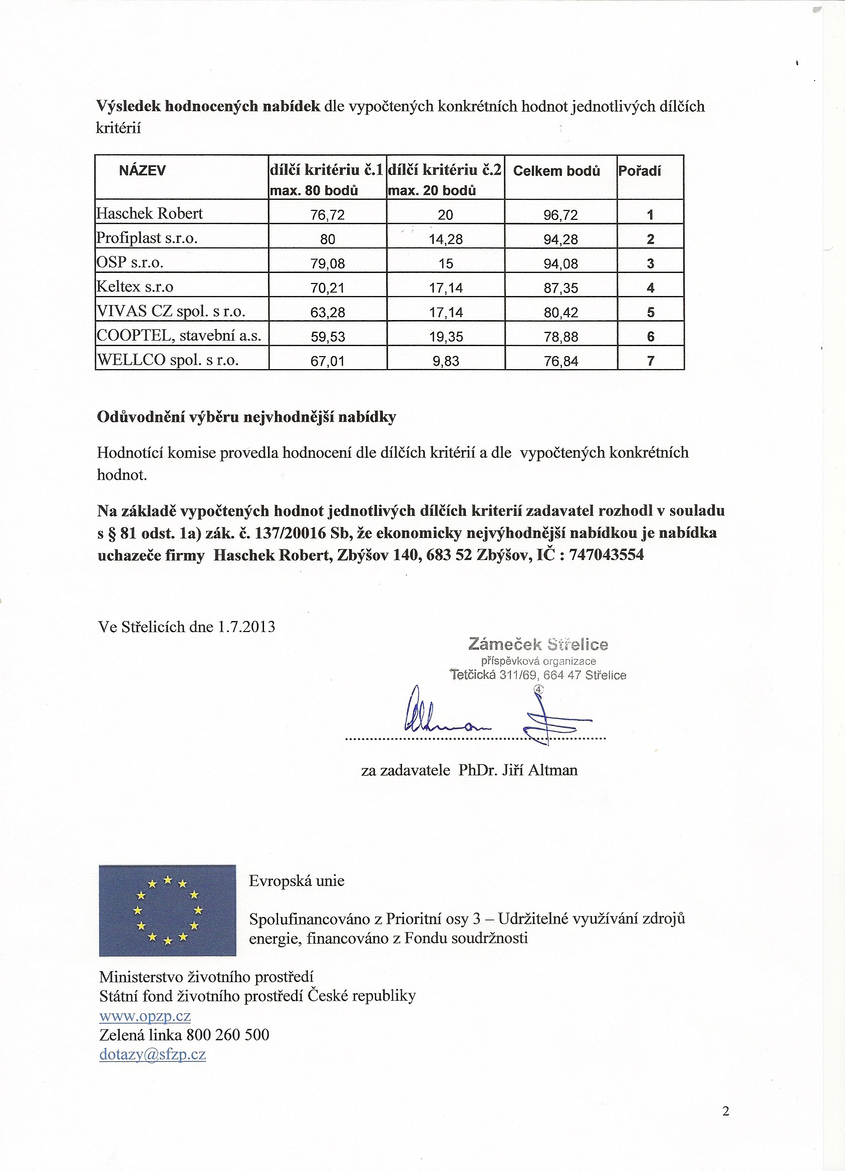 | Název: | Rozhodnutí o výběru nejvýhodnější nabídky č. 2 |